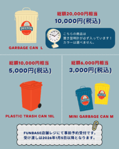 「DULTON福袋2026の先行予約は、FUNBASEの店頭で受付中です。